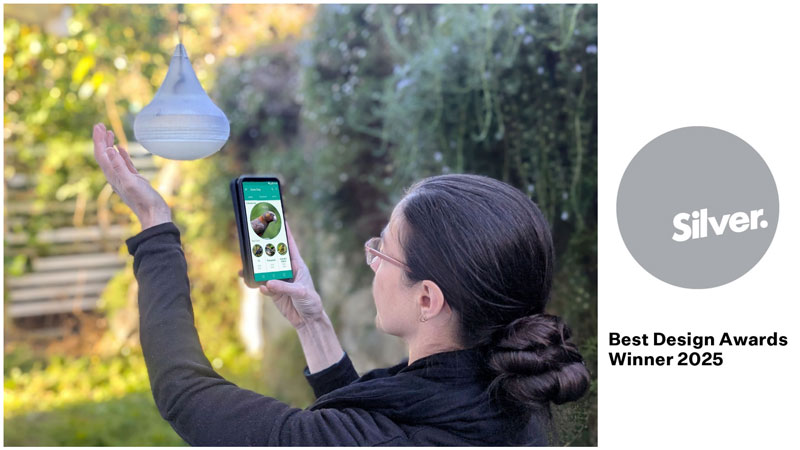 Third year Bachelor of Design (Product(, William Shinobi Scheffer, was awarded a silver for his native bird & pest monitor system, Eaves Drop.