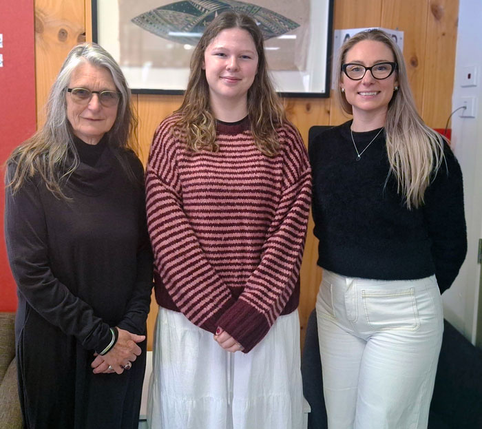 (L-R - Bridie Lonie (OPEFT board member), Sophia Clifford (Scholarship winner), Renee Stringer (Te Pā Tauira Village Manager)