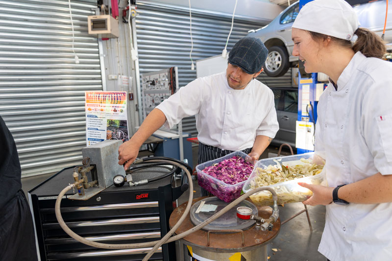 Culinary Arts students Al Gae & Kim Chiwell discuss the blend of fermented veges to feed into the anaerobic chamber