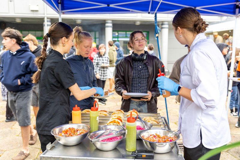 The students recently completed a zero waste systems paper and were challenged with preparing and serving hundreds of portions of delicious plant-based street food for ākonga and kaimahi to try.